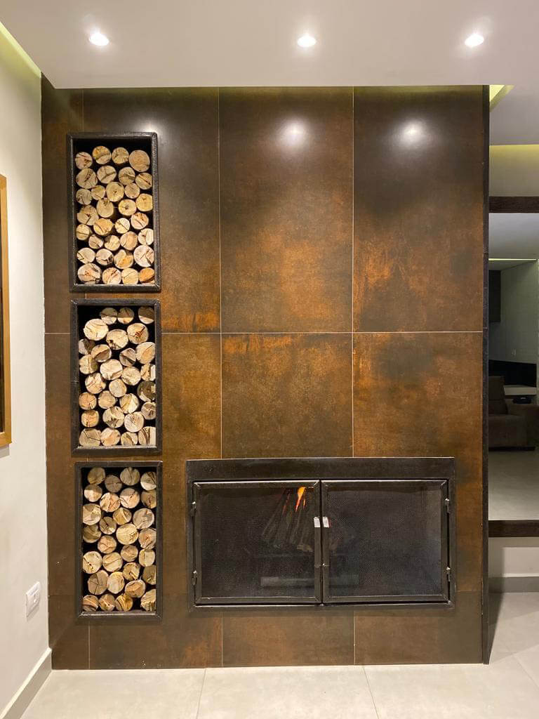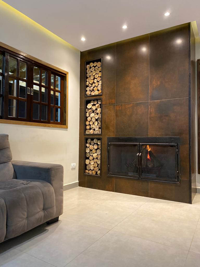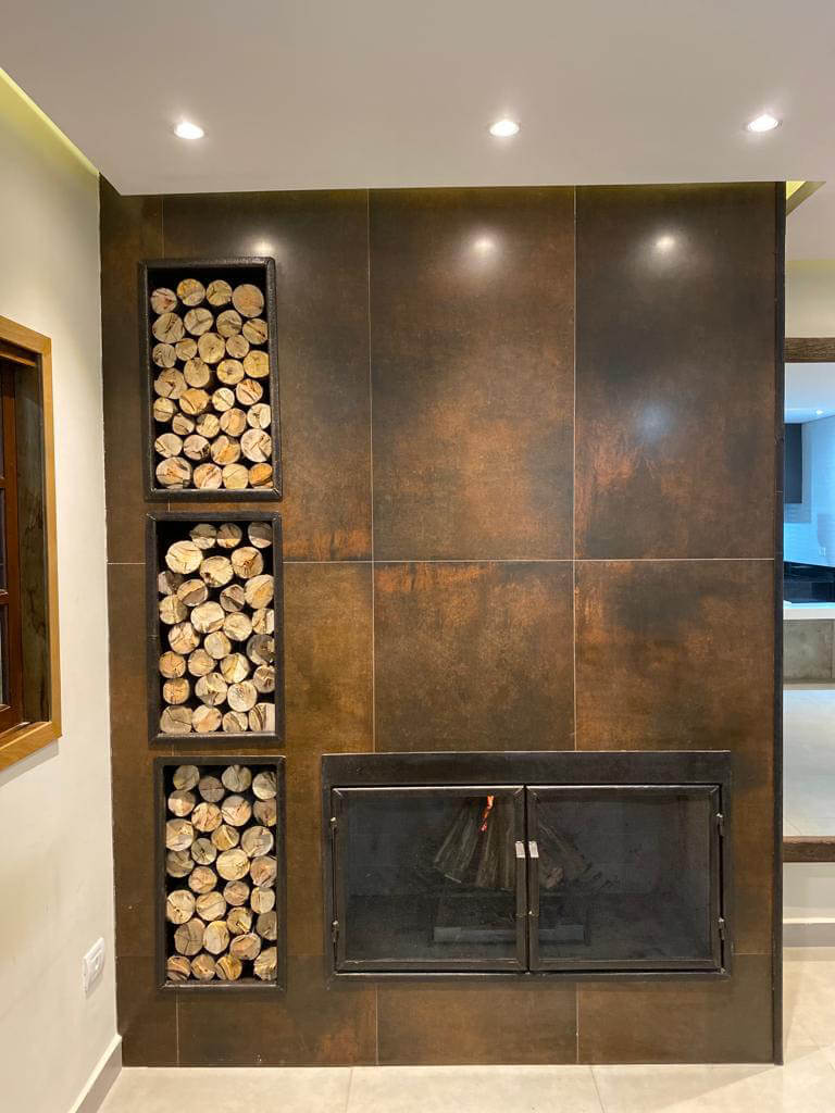 A lazer grill projeta lareiras sob medida construída em alvenaria com bloco de concreto celular.